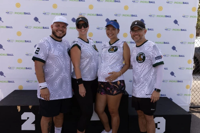 Sabates, VĐV pickleball bán chuyên (thứ 2 từ phải qua) lộ rõ bụng bầu khi chụp ảnh cùng đồng đội tại giải The Dink Minor League 2025 (Ảnh: The Dink).