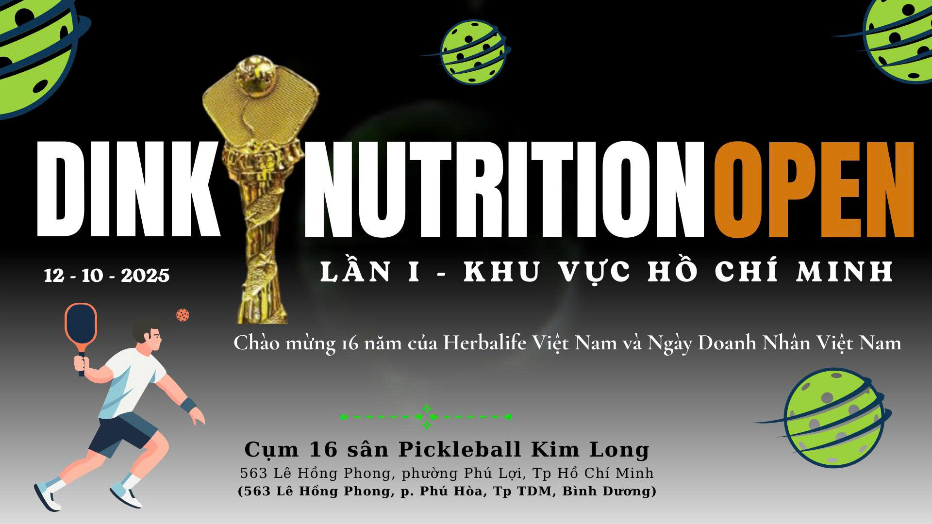 Pickleball đang nóng hơn bao giờ hết! Và lần đầu tiên tại Hồ Chí Minh, DINKNUTRITION chính thức tổ chức GIẢI ĐÂU DINKNUTRITION OPEN LẦN I, hứa hẹn mang đến những trận cầu kịch tính, những pha bóng đẹp mắt và tinh thần thể thao bùng nổ!